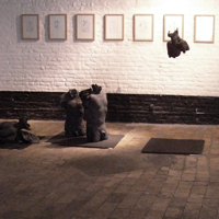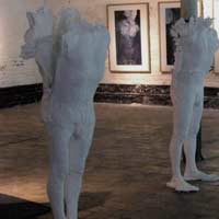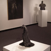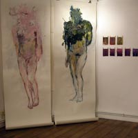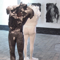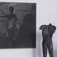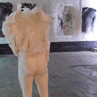 Papier et céramiques sont les matériaux privilégiés de cette exposition. Le premier, support de peintures crayons et mines diverses, est également le principal constituant d’une série de sculptures. Par une sorte d’hypallage à l’envers, le papier froissé, déchiré, chiffonné, plié, parle de nos états d’âme. Pour la céramique, en opposition à la sculpture ou au modelage traditionnel, c’est la nécessité technique qui, en obligeant à préserver un vide intérieur, amène à envisager le rapport entre cette intériorité et la surface extérieure de la pièce. C’est comme un rapport de forces qui s’établit et qui devient le moyen d’exprimer les tensions entre l’ intimité et l’apparence extérieure.
