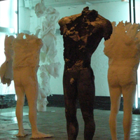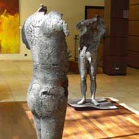 Ainsi, la fragilité humaine s’imprime dans les déstructurations de la surface ou dans sa fragmentation : une peau qui s’est constituée peu à peu, qui de déchire ou se développe, qui se fissure déjà, ou qui se désagrège. La forme se creuse ou s’ouvre ; l’intimité se dévoile, elle s’exprime dans les convulsions de la matière, ici particulièrement perturbée, toujours en mouvement, remuée, troublée, émue, là dans l’éparpillement ou le déploiement de ses formes, ailleurs comme effondrée sur elle-même. |