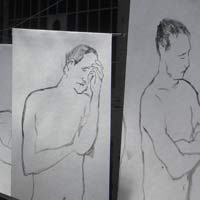 La représentation théâtralise l’image, buste caché, dans l’ombre jusqu’au pubis. L’image s’apparente à une mise en scène théâtrale où se diraient des histoires énigmatiques. Plusieurs corps se rencontrent pour un échange mystérieux, êtres surgis de nulle part aux modelés paradoxaux, tout tordus par le clair-obscur. La violence du réel transparaît derrière ces ombres étranges, et l’artiste peut alors utiliser cette technique pour servir la cause d’anonymes en souffrance.