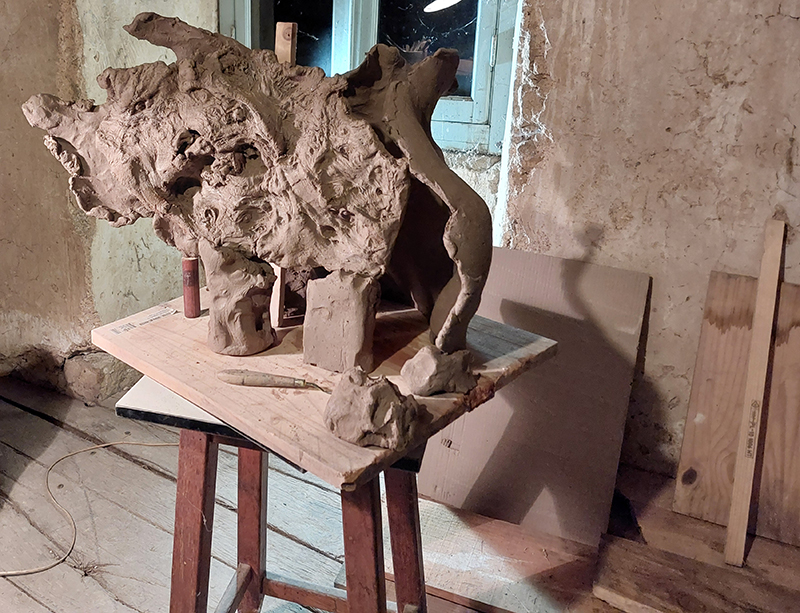 Certes, l’installation reste rudimentaire : quelques tables, beaucoup de rallonges électriques, et pas mal d’outils. Des sculptures céramiques commencent à être modelées et bientôt cuites.