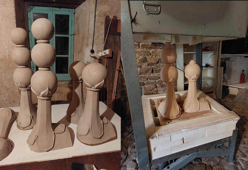 Pour cela, deux fours sont installés au rez de chaussé, dans l’ancienne écurie : un à gaz pour les cuissons céramiques et les réductions, l’autre électrique pour la fonte du verre.